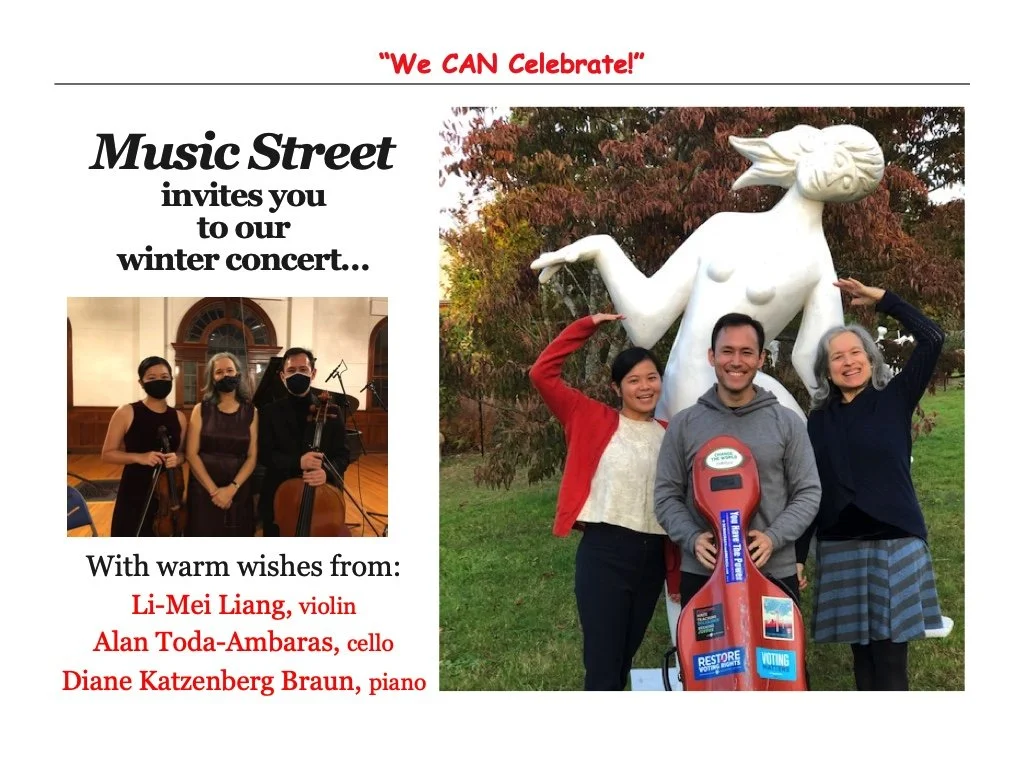 The world has become a new place in 2020 and we as musicians are finding ways to continue to express the beauty that still continues to inspire us. Rising from the ashes so to speak, meeting the challenges of our time, we present this month a program that we hope will bring joy to many music lovers. Above we are pictured last Fall, when we were able to be close to each other and our audience. This November 2020, recording our concert, we are wearing masks, spaced apart and without an audience.